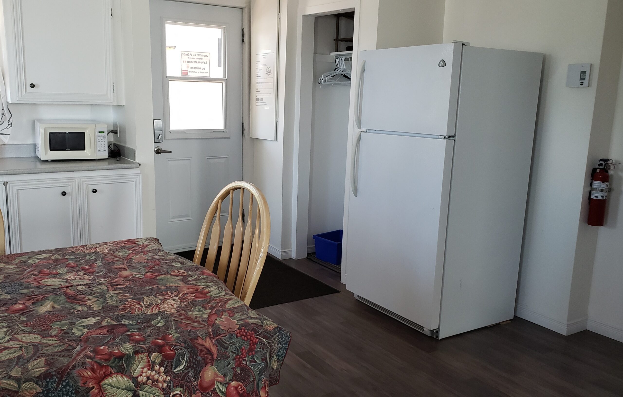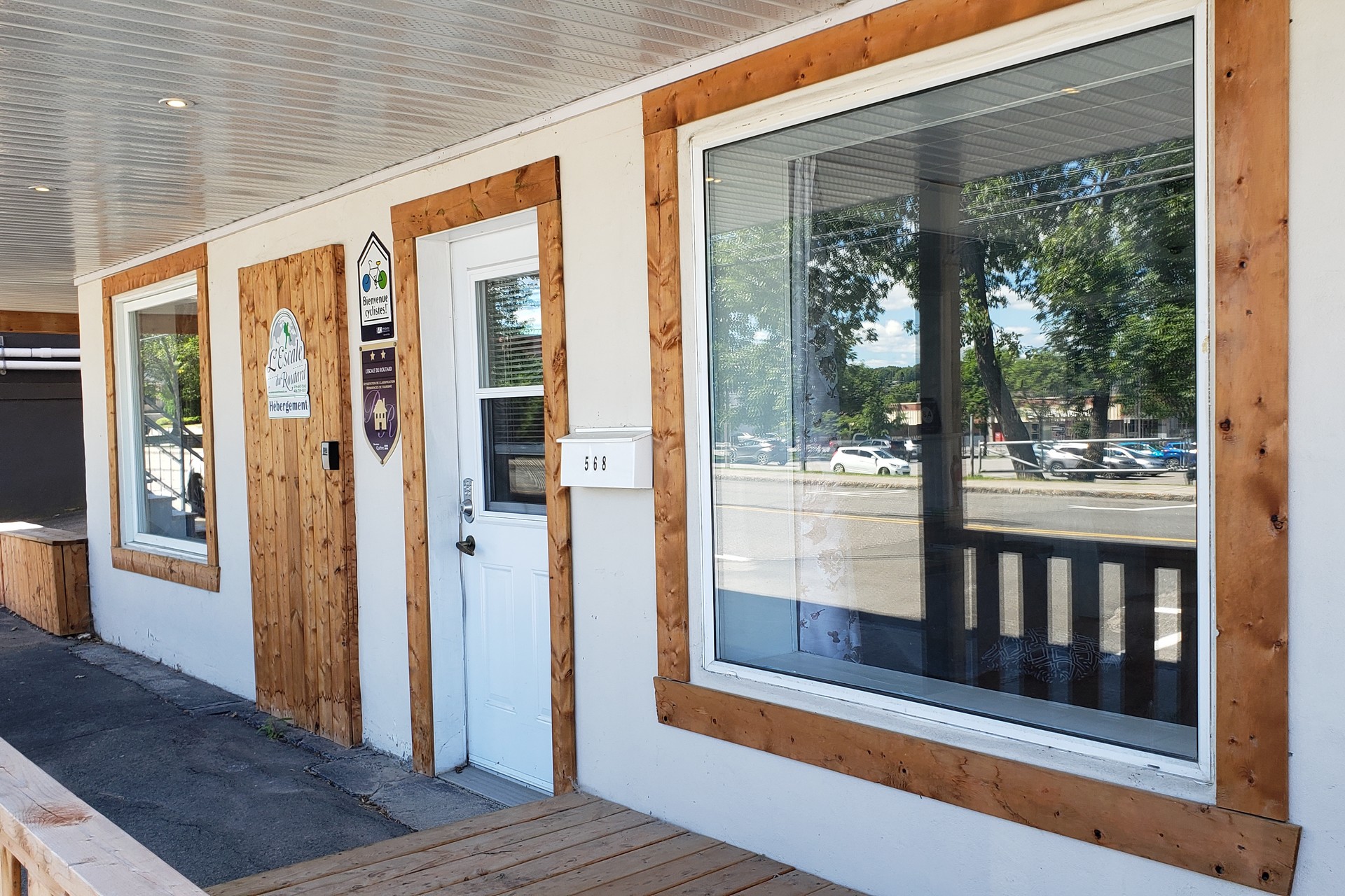 Appartement #2. Un 4 et 1/2 situé au 1er étage de l’Escale du routard. Il comprend 2 chambres, salon, cuisine, salle de bain, grande galerie extérieure.