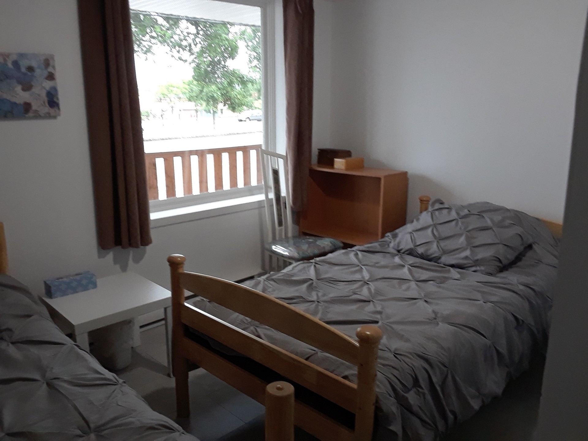 Appartement #3. Un 4 et 1/2 situé au 2e étage de l’Escale du routard. Il comprend 2 chambres, salon, cuisine, salle de bain, petite galerie extérieure.