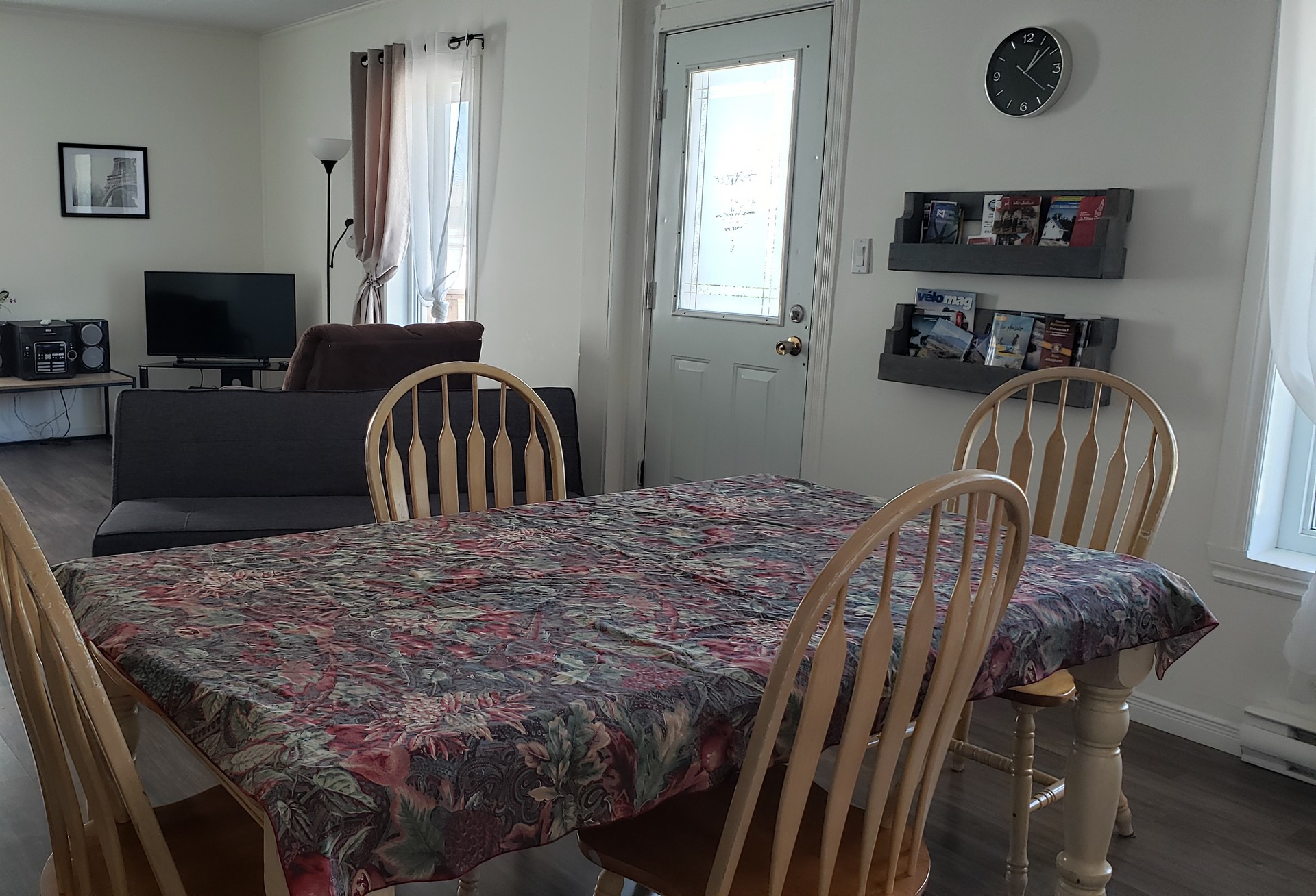 Appartement #1. Un 5 et 1/2 situé au rez-de-jardin de l’Escale du routard. Il comporte 3 chambres, salon, cuisine, salle de bain et une terrasse en avant.